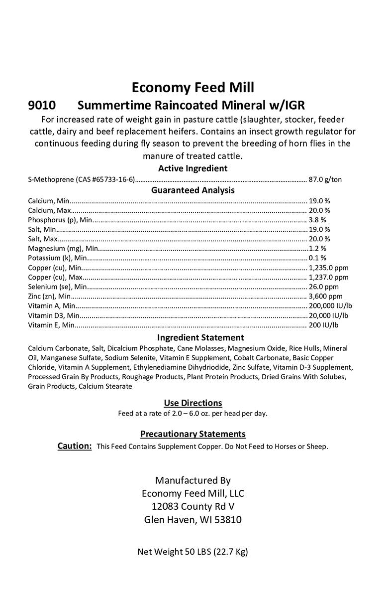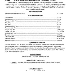 Excellent source of minerals and vitamins for cattle on pasture w/ fly control